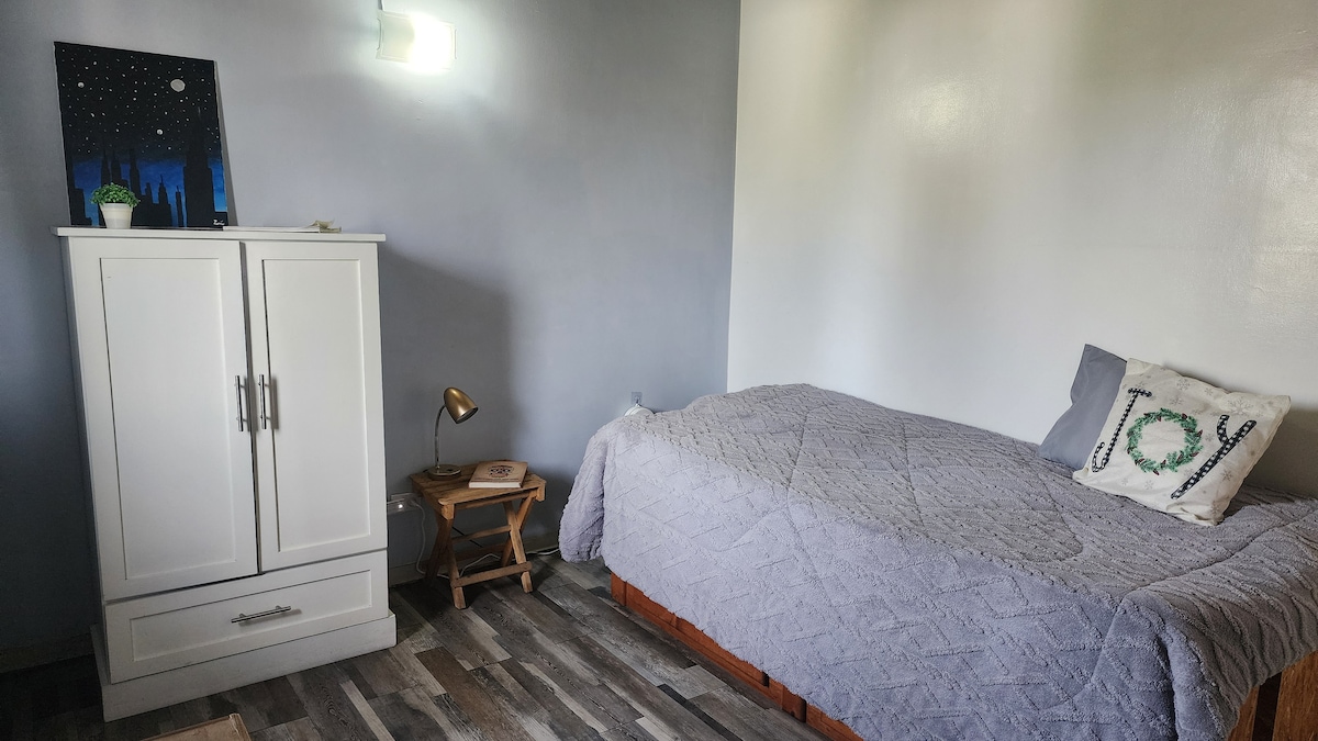 Cozy studio in safe neighborhood in Rosarito. All services available, including hot water, smart tv, microwave, a small fridge, coffee maker, drinking water, and wifi. It's a 15 minute walk or 4 minute drive to downtown and the beach. Your studio has access to our garden and ample safe parking on the street.