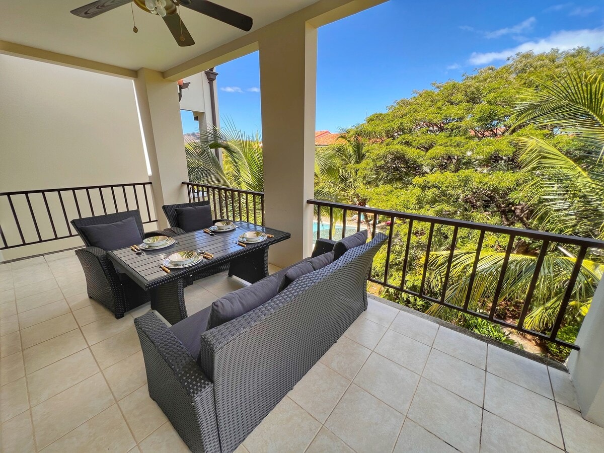 Enjoy your stay in this comfortable one-bedroom apartment filled with natural light. When you open the door you are immediately welcomed by decorative accents that give the apartment a sense of style. It has a spacious marble top kitchen with all the amenities needed for your stay. The living room includes a sofa bed with access to the terrace overlooking the Lazy River pool. It has one ample bathroom that can be accessed through the master bedroom or the living room.