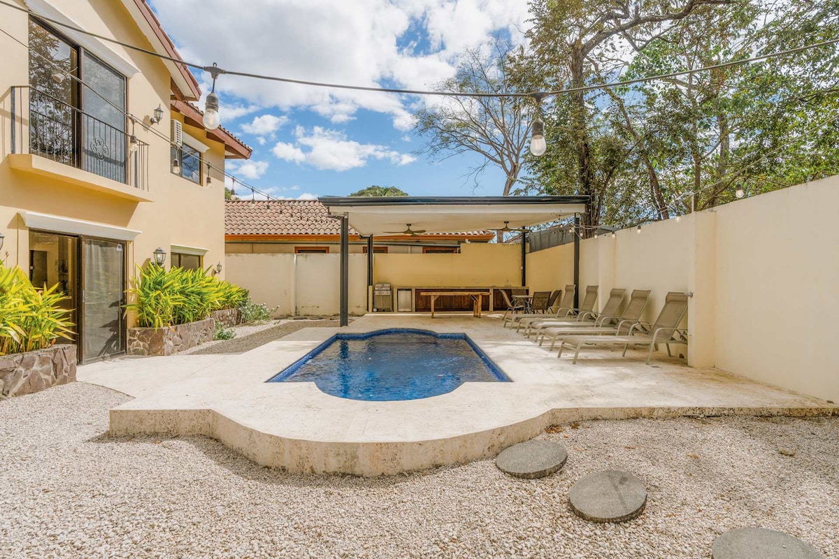 Come enjoy Tamarindo and stay with us! Casa Leona is a lovely spanish colonial house with a pool in the center. It has 5 bedrooms with private bathrooms, a kitchen, dining and living area. Its located in a good and peaceful neighborhood in Central Tamarindo within a 5-minute walk to the beach, restaurants, shops and supermarkets. Work from here! We have High Speed Internet 200mgs.