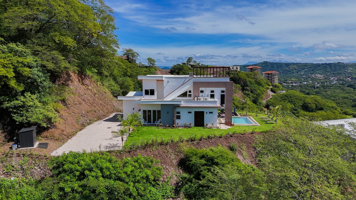 Escape to Casa Shantí, where modern luxury meets total tranquility. This three-bedroom architectural gem in exclusive Coco Bay Estates features a private infinity pool with bay views, rooftop terrace, gourmet chef's kitchen, and three levels of sophisticated living. Enjoy 24/7 gated security, stunning mountain and ocean vistas, and complete privacy; all just 25 minutes from Liberia Airport and minutes from Playa del Coco. Your private hilltop sanctuary awaits.
