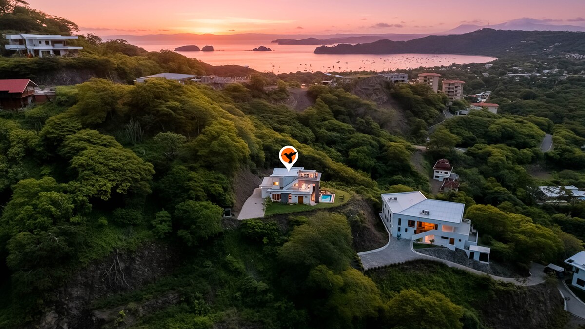 Escape to Casa Shantí, where modern luxury meets total tranquility. This three-bedroom architectural gem in exclusive Coco Bay Estates features a private infinity pool with bay views, rooftop terrace, gourmet chef's kitchen, and three levels of sophisticated living. Enjoy 24/7 gated security, stunning mountain and ocean vistas, and complete privacy; all just 25 minutes from Liberia Airport and minutes from Playa del Coco. Your private hilltop sanctuary awaits.