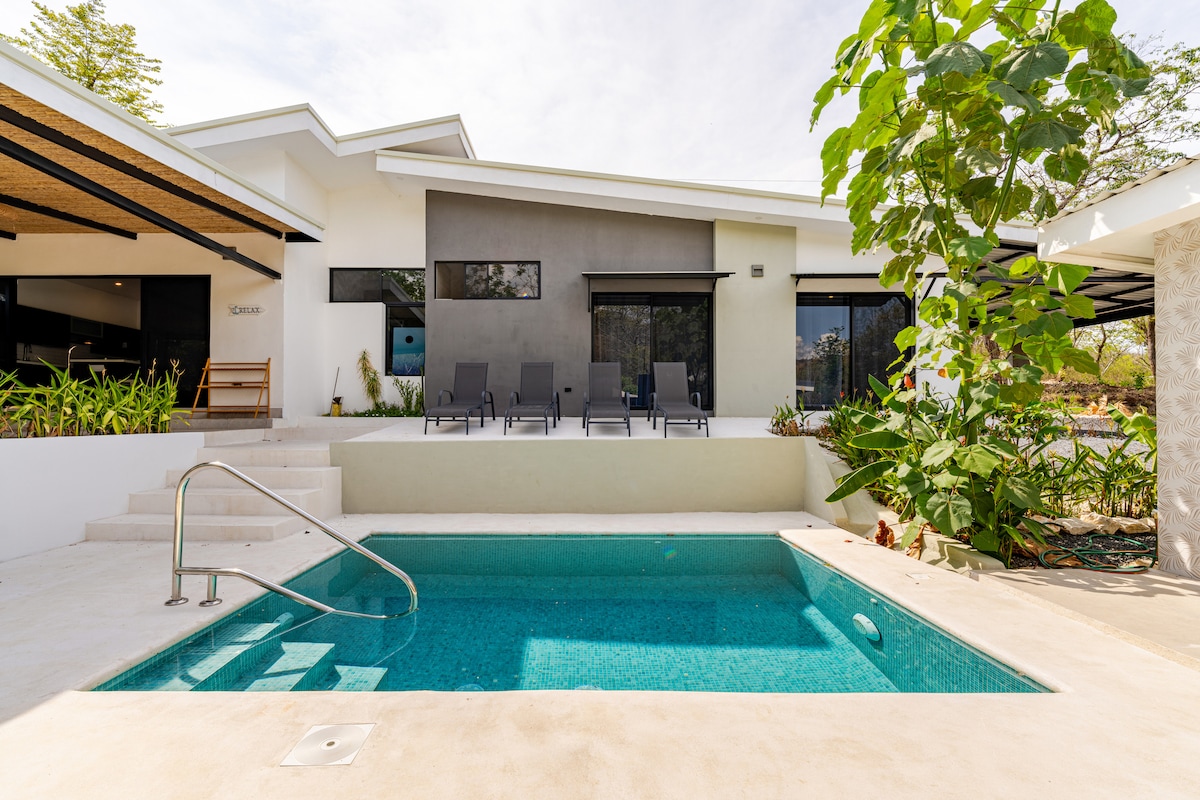 This is the place to enjoy Costa Rica in all its flavors! You will select it for its proximity to one of the most beautiful beaches on the coast, "Playa Conchal" (5 min) and “Playa Flamingo" (10 min), minimalist design, spectacular swimming pool, and green area. Enjoy the calm surroundings and the convenience of a Private Pool, private parking, BBQ, Air Conditioning in all the rooms, excellent Internet, and restaurants and groceries in less than 3 minutes drive.