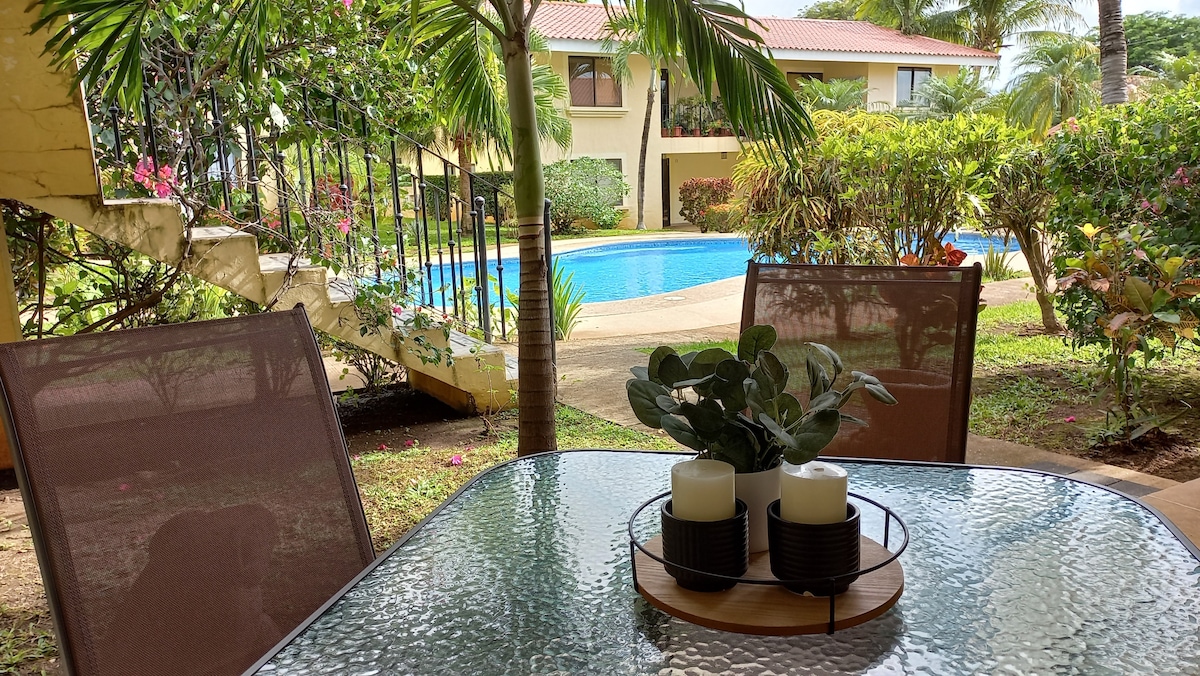 Sombras at Coco is an elegant, secure escape in the most desirable location of Playas del Coco. Just steps from the beach and walkable to top restaurants, cafés, and nightlife, this upscale complex features lush tropical gardens and two stunning swimming pools. The unit offers a private garden-view patio, easy one-step entry, and convenient nearby parking—luxury, comfort, and convenience in one exceptional stay.