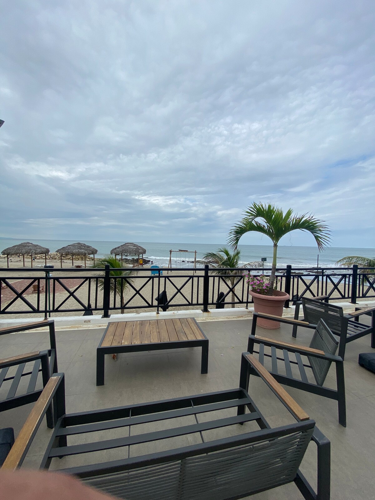 Apartamento frente al mar en el Ocean Suite 1 con todas las comodidades. Edificio moderno y con amplias áreas sociales a 45 minutos de Guayaquil. Exclusivo con vista al mar, y amplia playa privada ,Complejo cerrado y seguro con guardianía. Apartamento de 1 habitación con balcon con vista al mar, equipada con 1 cama (2 y 1/2 plazas), Tv , baño. La sala cuenta con 2 sofás cama. Aire acondicionado. cocina, refrigeradora, cafetera,La lavadora, secadora. Parqueo exclusivo. We speak english