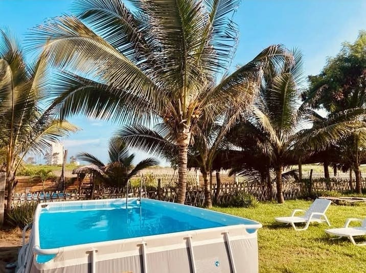 Located in Playas Villamil, three blocks from the beach and 0.5 km from shops and restaurants. The villa offers six bedrooms, each with a private entrance and air conditioning. Five rooms include a private bath, hot water, hair dryer, iron, shampoo, soap, and lotion. Guests enjoy exclusive access to the pool and cabana, Jacuzzi, bar, barbecue, and spacious outdoor area. The villa also features a full kitchen with an oven, stove, microwave, cookware, dishes, and utensils.