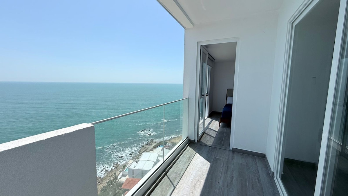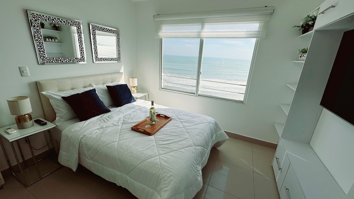 “Modern oceanfront apartment with a stunning 180° panoramic view. Features 3 bedrooms with King beds and private bathrooms, 80 Mbps fiber-optic Wi-Fi, Netflix-enabled TVs in each room, and private parking. Perfect for families, couples, or business travelers seeking comfort and an unbeatable location.”