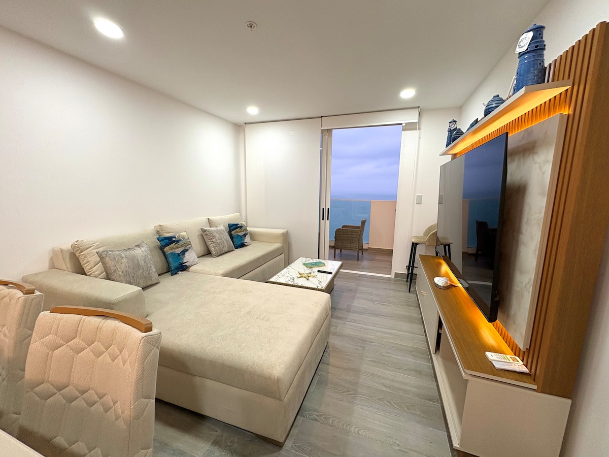 Bienvenido a tu Suite de ensueño con Vista al Mar! Disfruta la puesta del Sol, la brisa del océano y la comodidad de nuestro alojamiento totalmente equipado, con aires acondicionados e Internet de alta velocidad. Ubicado estratégicamente dentro de una Urbanización privada con acceso a Piscinas, Jacuzzi, Parque Infantil, Gimnasio, Baños, Duchas, Seguridad 24/7, etc. Descubre el verdadero significado del relax y la comodidad en tu próxima escapada con nosotros. Reserva ahora y vive la experiencia!