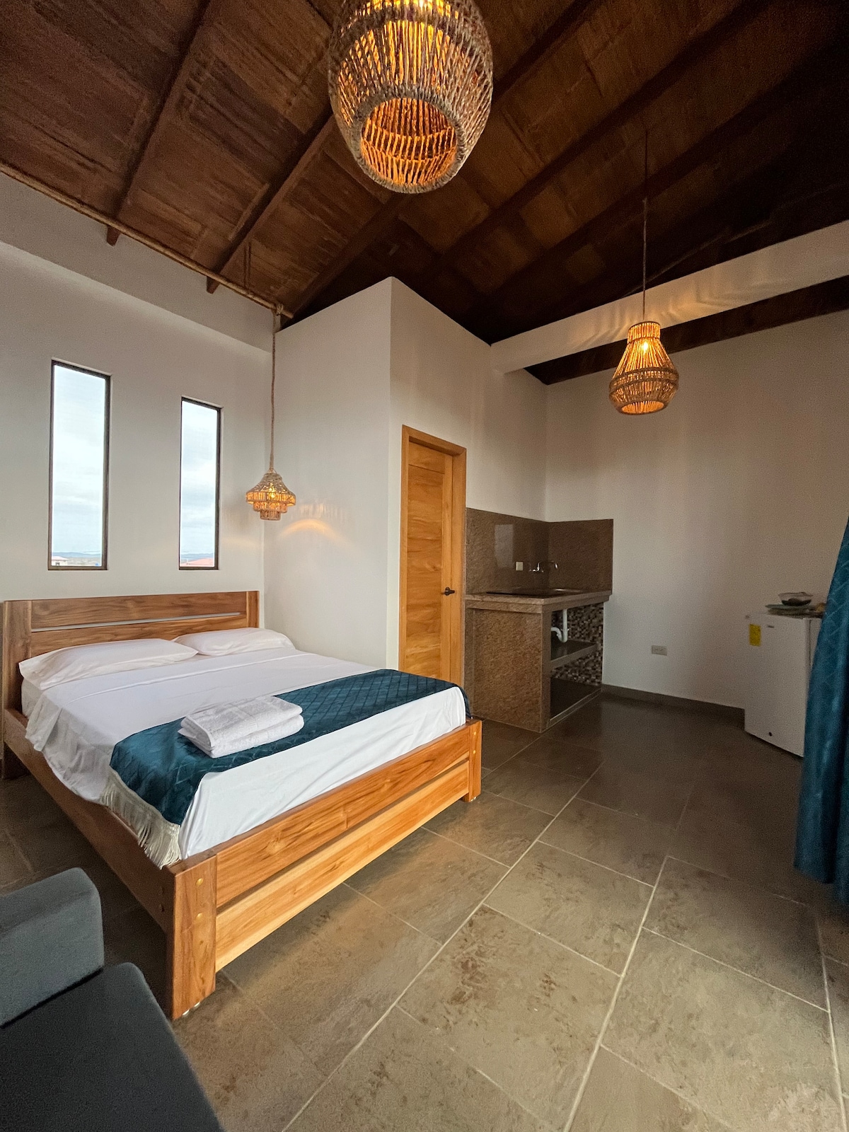 Este encantador y exclusivo lugar para quedarte no pasa por alto ningún detalle. Habitación Colibrí, un espacio amplio de 24 m² con todas las comodidades para tu descanso: A/C, TVcable, WiFi, agua caliente, ventilador y refrigeradora. Desde la habitación podrás disfrutar de hermosas vistas al jardín. Además, tendrás acceso a nuestras áreas sociales: piscina, canchas, juegos, hamacas en el jardín y una acogedora ramada. La playa está a solo 1 minuto y medio caminando! Capacidad hasta 4 personas.