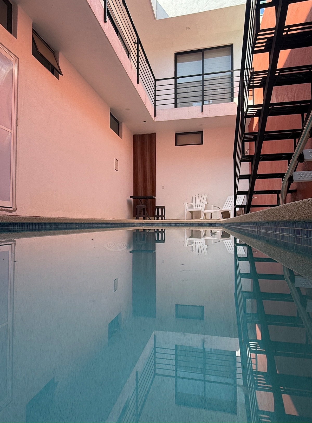 Relájate con toda la familia en este alojamiento donde la tranquilidad se respira. Departamento totalmente nuevo, ideal para 2 adultos y 2 menores, cuenta con una cama King size y un sofá cama. Se cuenta con lavadora y secadora en común en la tercer planta. Las palapas están disponibles como área de esparcimiento.