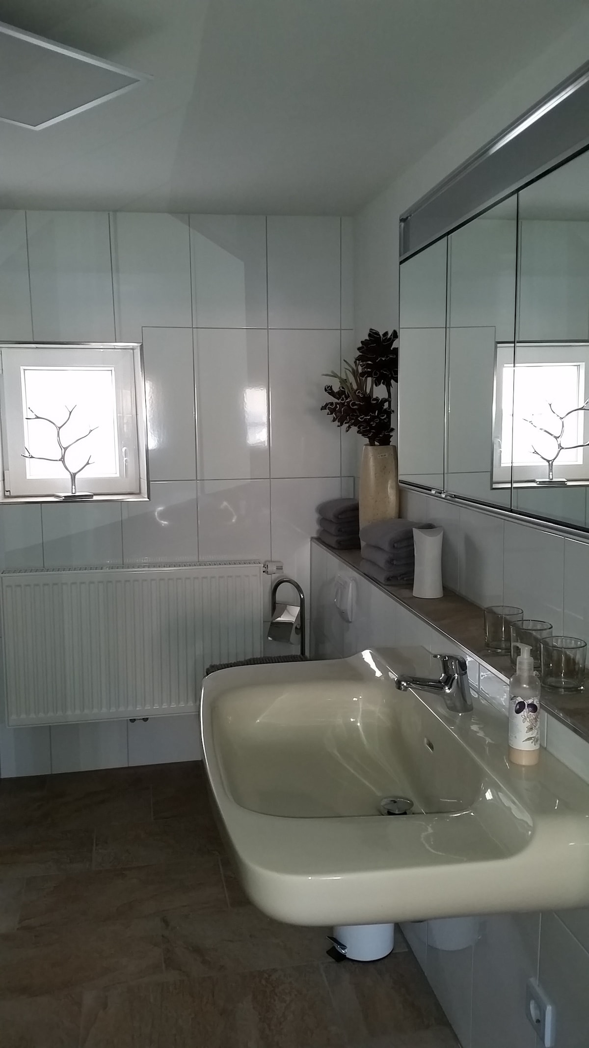 Die großzügige, lichtdurchflutete 4-Zimmer 100qm Etagenwohnung mit einem großen Balkon bietet alles für einen komfortablen Aufenthalt. Zwei Parkplätze sind direkt vor dem Eingang vorhanden. Alle Räume sind hell und modern eingerichtet. Das ganze Appartement ist sehr hell, ruhig und eignet sich hervorragend zum Ausruhen oder Arbeiten. Das helle und freundliche Badezimmer mit Dusche ist mit Handtüchern, Duschbad und Föhn ausgestattet. Zusätzlich gibt es eine weitere separate Toilette.