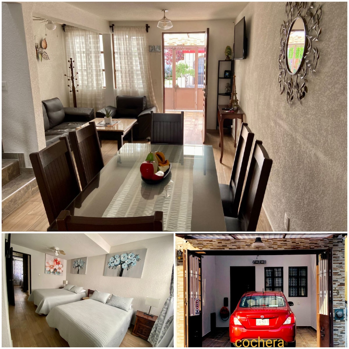 Tu familia estará cerca de todo si te hospedas en este alojamiento, la casa cuenta con 3 recamaras, dos con cama matrimonial, una con dos camas individual, cocina completa, baño, sala comedor y cochera para un auto o camioneta, en caso de viajar con tu mascota es bienvenida, si viajan con menores de 3 años , contamos con una cuna viajera que podrás usar agusto para la seguridad de tu bebé