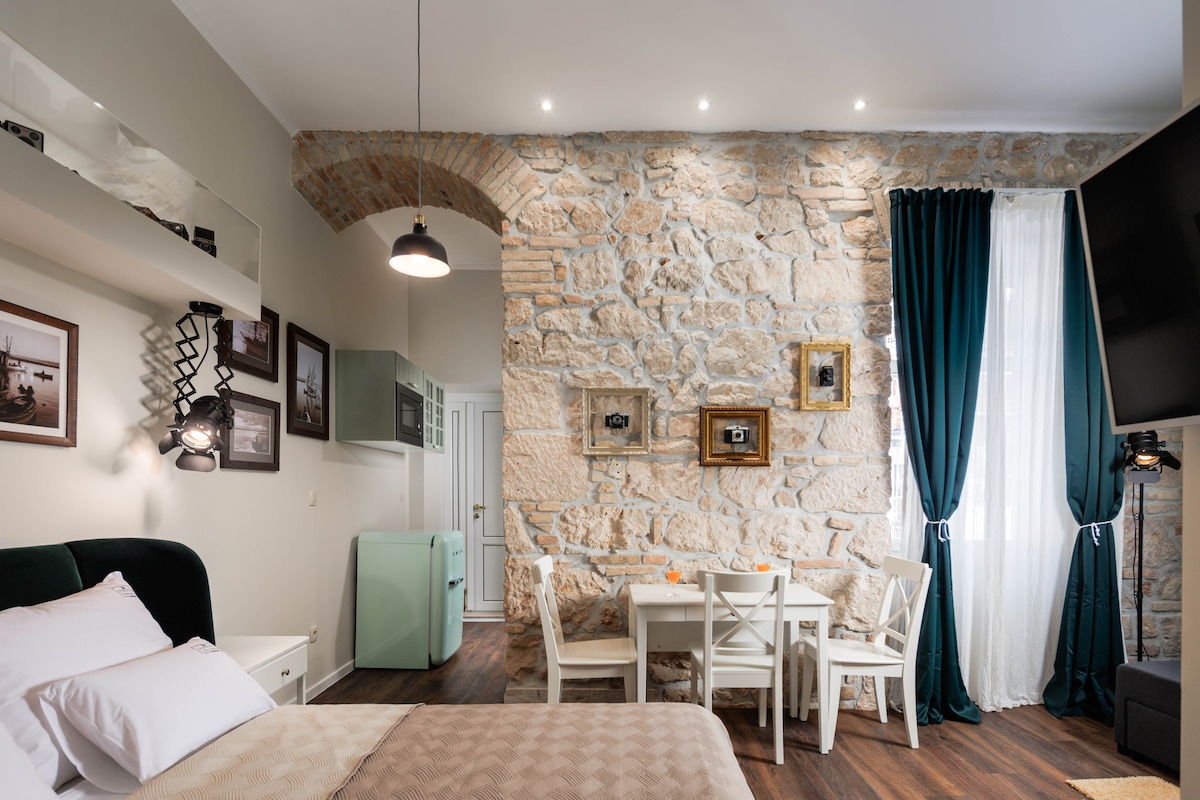 This modern apartment includes a full (eat-in) kitchen, a combined bedroom and living area with a comfortable pull-out couch, and a recently updated bathroom. Apartment is located on the first floor and situated in the historical city center. It's ideal for couples especially if they are arriving by bus because it is one minute walk from the central bus station. Apartment is very well equipped. Dishwasher and washer-dryer are located in the kitchen and TV in the air conditioned living room.
