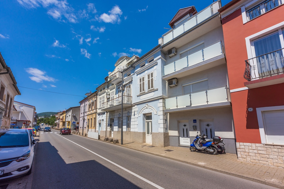 Holiday apartment for max. 5 persons, located in Crikvenica, 300 m from the beach, 200 m from the grocery store, 200 m from the restaurant, 600 m from the city center. It is situated on the ground floor, has a kitchen, living room with sleeping couch for 1 person, 2 bedrooms with double beds, bathroom, big terrace, TV, WiFi, air condition (1 in living room and 1 in each bedroom), grill in the yard, parking place.