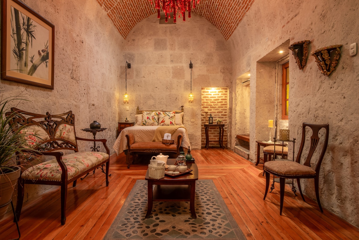 Habitación del siglo XVIII, construida en su totalidad de Sillar, piedra volcánica característica de las construcciones coloniales en Arequipa. Fue restaurada y renovada combinando a la perfección un estilo minimalista con la arquitectura caracteristica de esa epoca.