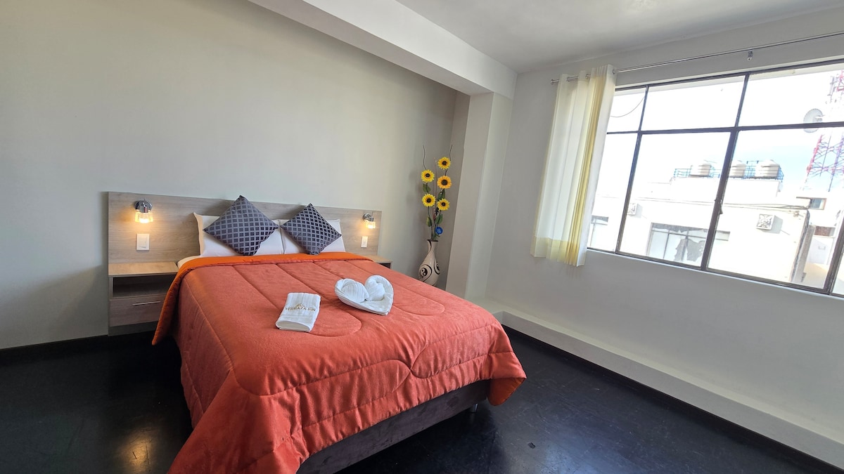 Habitaciones con cama grande y baño privado en hotel, ubicada en avenida principal de Arequipa. Cerca de centros comerciales, restaurantes, bancos, además de la Plaza de Cayma y Yanahuara. Ideal para parejas que buscan privacidad, comodidad y fácil acceso a la ciudad. Como complemento, también ofrecemos habitaciones con cama doble, perfectas para viajes familiares o grupos que deseen compartir estancia en un mismo lugar.