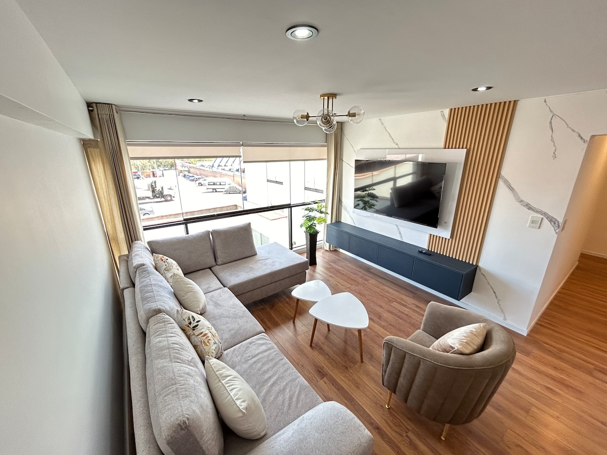 Full apartment just 1 block from the Main Square — perfect for families, couples, or groups of friends who want to stay in the heart of Arequipa, close to supermarkets, restaurants, museums, churches, and all major tourist attractions. It features a living room with 58'' Smart TV, WiFi, sofa bed, fully equipped kitchen, laundry area, 2 bedrooms, and 2 full bathrooms. Everything you need for a comfortable stay in a top location.