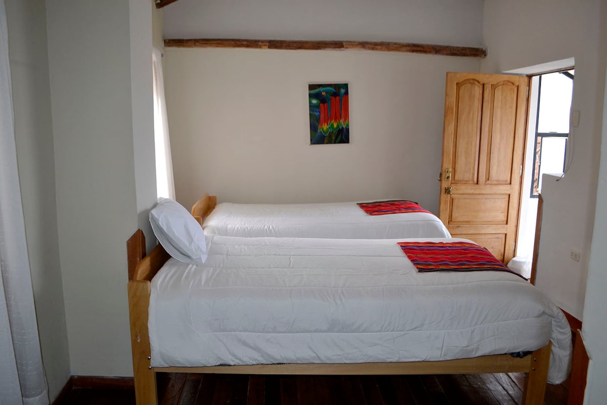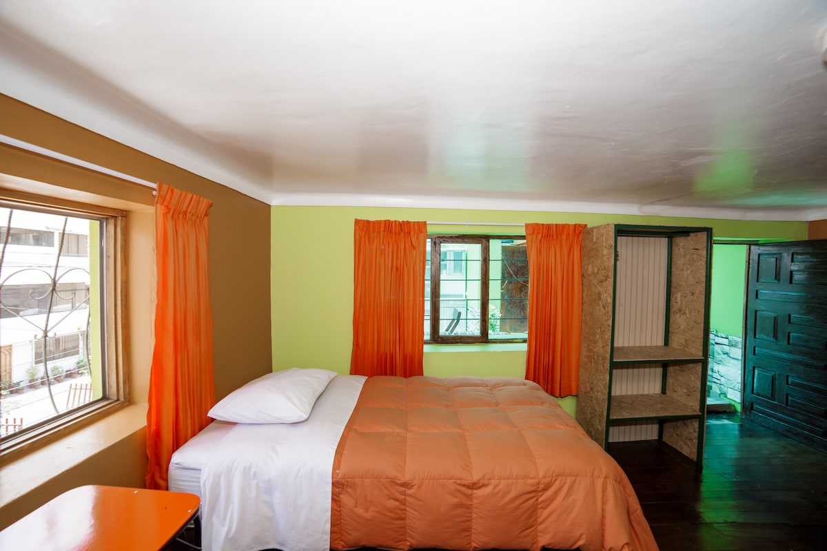 Habitación privada doble con vista al bosque del Santuario Sacsayhuamán, en el pleno centro histórico de la ciudad de Cusco, ubicado a 3 cuadras de la Plaza de Armas, a puertas del parque Arqueológico de Sacsayhuamán. La habitación cuenta con un baño privado, agua caliente las 24hrs, wifi, tv/cable de 32" y la facilidad de que los huéspedes puedan preparar su propio desayuno en una cocina equipada de uso común, los huéspedes se sentirán como en casa en un lugar tranquilo y silencioso.