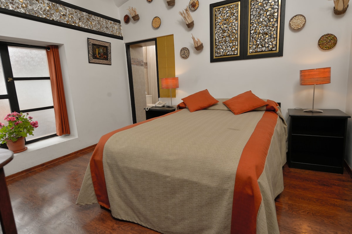 Hermosa habitación en “CASA CRISTOBAL Siete Cuartones CASONA COLONIAL” Hotel Boutique, estamos a 2 cuadras de la plaza de armas, cerca de todo. La habitación cuenta con baño privado moderno con agua muy caliente las 24 horas (25 m2), internet de alta velocidad, Smart TV con Netflix y Disney +, atención las 24 horas, limpieza y cambio de toallas diaria. - Almacén de equipaje GRATUITO - NO INCLUYE DESAYUNO Lugar silencioso y tranquilo. Contamos con una cafetería EULALIO CAFE con una carta diversa.