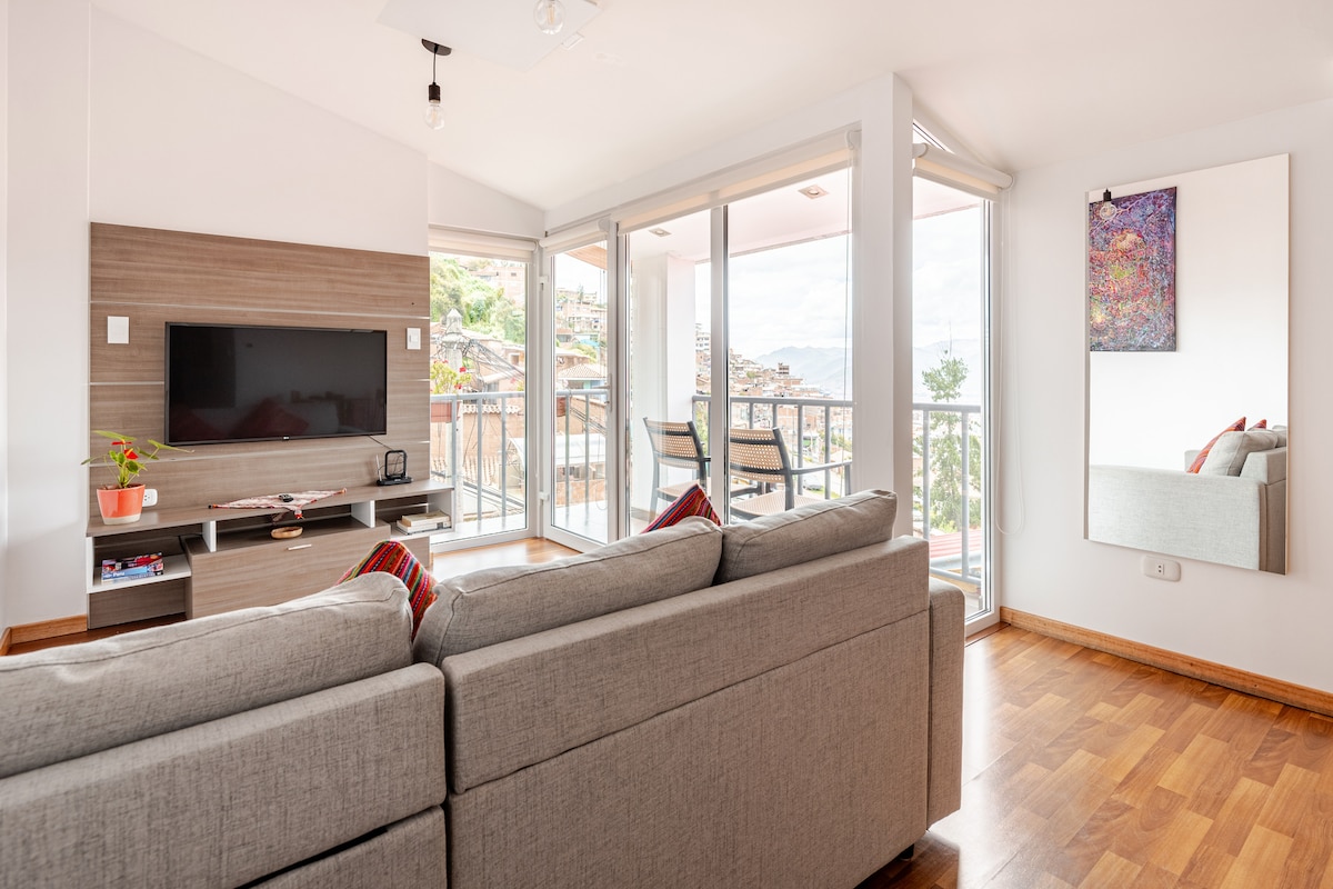 Apartment with a beautiful view of Cusco. Located in the traditional neighborhood of San Blas, it's an ideal spot for couple-family. Righ here family-friendly activities, nightlife, interesting museums,lovely churches.We're just 5 min from the main square. You’ll love our space due to location, the comfy bed, the coziness,amazing view,home feeling.We can offer you AIRPORT PICKUP & TRANSFER,besides we also count with a reliable TRAVEL AGENCY with professional staff