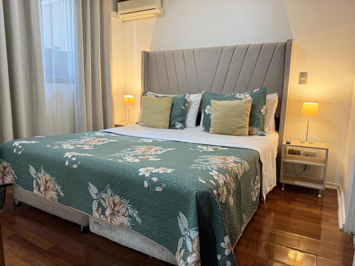¡Vive Santiago desde su corazón! Departamento en pleno Santiago Centro, ideal para recorrer la ciudad a pie. A pasos de Plaza de Armas, Cerro Santa Lucía, La Moneda, museos, barrios Lastarria y Bellas Artes, Mercado Central y más. Cómodo, funcional y con excelente conectividad (a pasos del metro). Cuenta con WiFi, cocina equipada, TV y seguridad 24/7. Perfecto para turistas, parejas o viajes de trabajo.