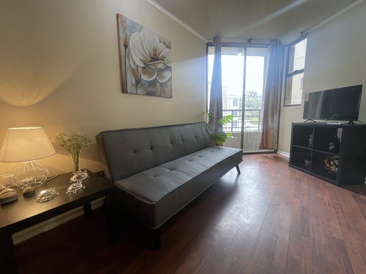 ** Excelente punto de partida para conocer la ciudad** Hola, soy Anita y te invito a hospedarte en un sector tranquilo y seguro, a pasos de exclusivos hoteles y los puntos más atractivos del sector como Plaza de Armas, Cerro Santa Lucía, Barrio Lastarria, museos, comercio y todas las atracciones imperdibles del casco antiguo. Cuenta con guardia 24 horas en control de acceso. Check in/out autónomo. Completamente equipado para disfrutar una maravillosa experiencia en Santiago.
