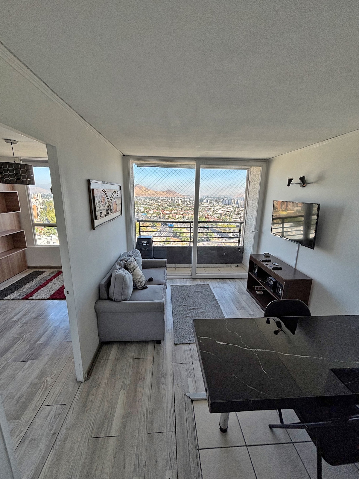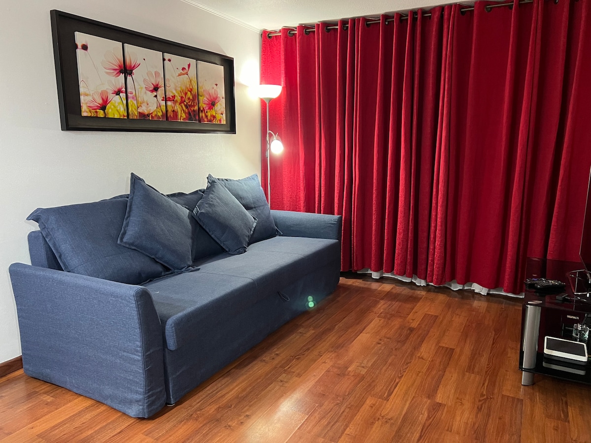 This apartment is ideal for relaxing and enjoying the city. It's centrally located, between the Santiago Centro and Providencia districts, one of the best locations in the city. It offers beautiful views of San Cristóbal Hill and the Sky Costanera. It's just a 3-minute walk from the metro and buses. Includes: Free Wi-Fi, a fully equipped kitchen, sheets and towels included, a large bed with a large Smart TV. Self-service entrance with a key, allowing you to arrive at any time.