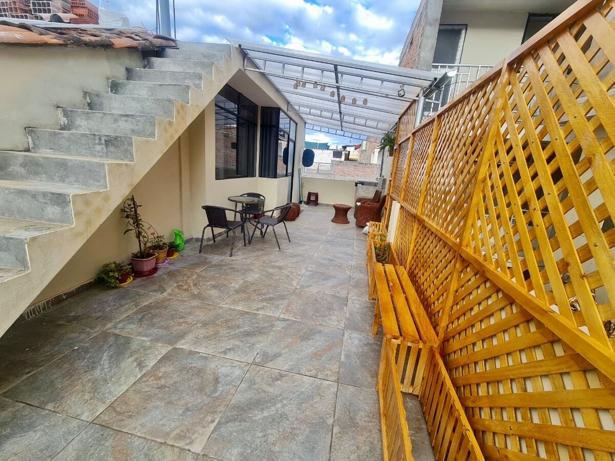 Si estás buscando un lugar amplio y seguro, te ofrecemos un bonito y moderno departamento dúplex, amplio, cómodo, bien iluminado y ventilado. Ubicación céntrica cerca de la plaza de armas, bancos, clínicas y otros servicios importantes. Dispone de 04 habitaciones completamente amobladas, 01 cocina equipada, sala-comedor, 03 baños, terraza, lavandería, agua caliente, TV por cable (sala y dorm princ.), wifi, netflix, intercomunicador. Consultar con el Anfitrión cochera como servicio adicional.