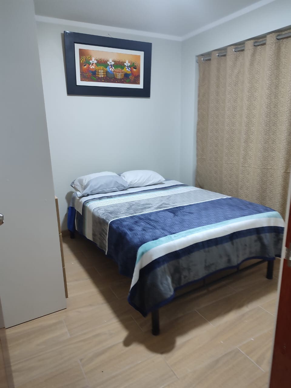 Este departamento cuenta con excelente vista, una amplia sala de estar perfecta para relajarte y disfrutar unos días. la zona es muy tranquila y segura a solo 5 minutos de la plaza principal, con un hermoso parque justo al frente, la universidad a 3 cuadras. cuenta con ascensor desde el segundo nivel La cocina está equipado funcional con encimera, microondas, refrigeradora, cafetera, arrocera, menaje, agua caliente, Smart TV, Ntfx,wifi disponible, área de trabajo, Lavadora, plancha, toallas