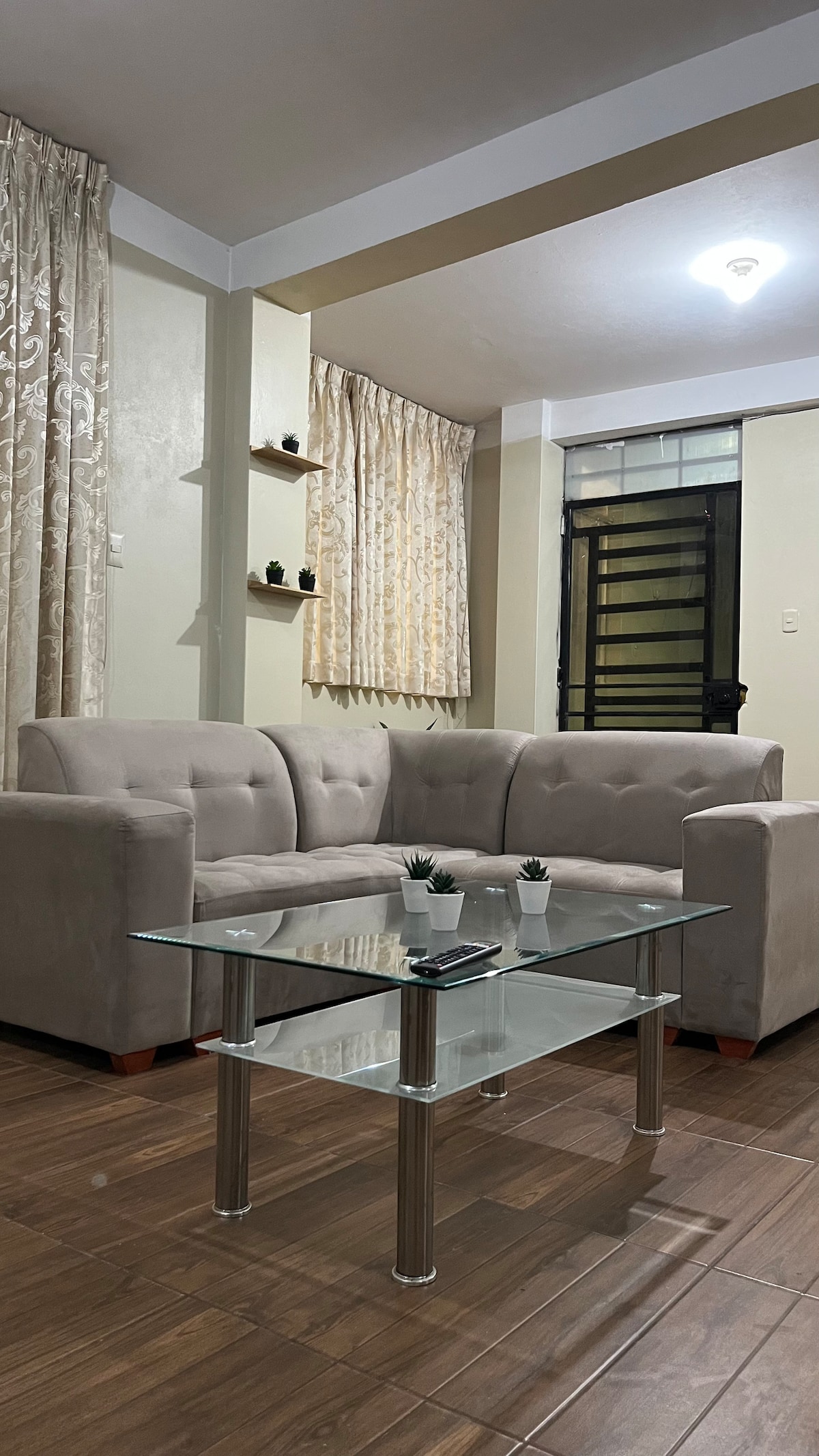 Disfruta de una estadía cómoda en pleno centro de Cajamarca, a solo 2 cuadras caminando de la Plaza de Armas. Departamento completo ideal para hasta 4 personas. Cuenta con 1 dormitorio con cama de dos plazas y cama de plaza y media. En la sala hay un sofá cama, además de sala comedor, cocina equipada y baño con agua caliente. Incluye WiFi, TV y servicios básicos. Espacio limpio, seguro y tranquilo, con buena iluminación natural. Cerca de restaurantes, bancos, tiendas y transporte.