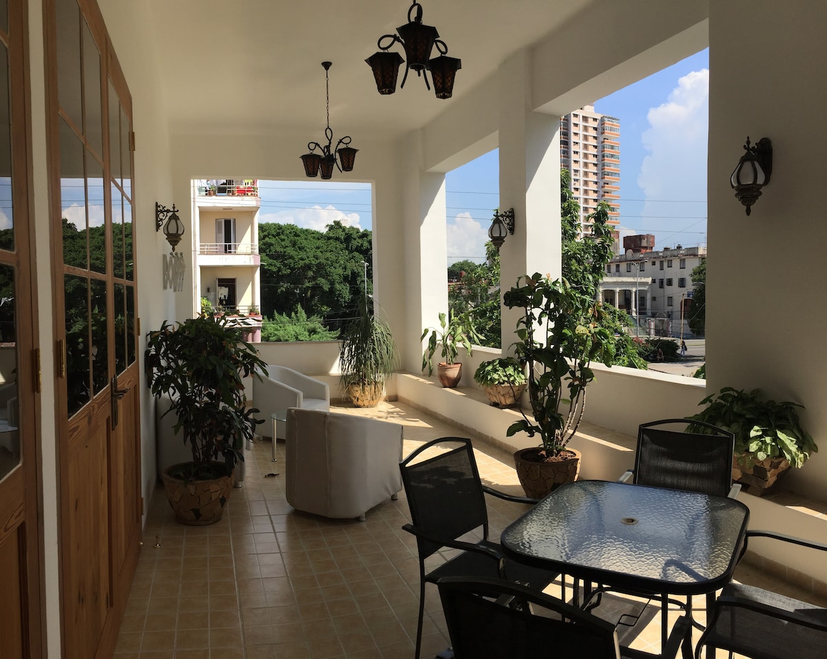 Modern entire apartment centrally located (80mts from Malecon Boardwalk), nearby WIFI zone and the mostly of the tourist places: Hotel Melia Cohíba, paladars, shops, museums, theatres, bars..., just 200mts from the public transport and 5 minutes driving from Historical Center. Vedado is the most safety, quiet and residential area with friendly people. Apartment comfortable and illuminated with Ocean view and nice city view We provide assistance 24hrs. You will be welcome!