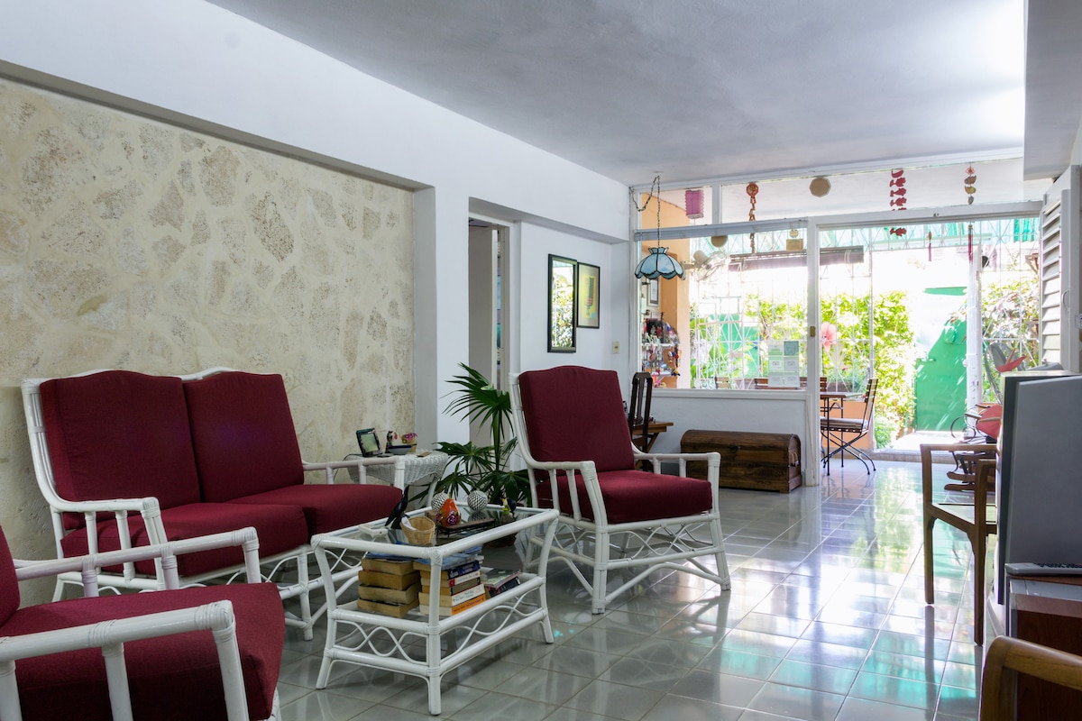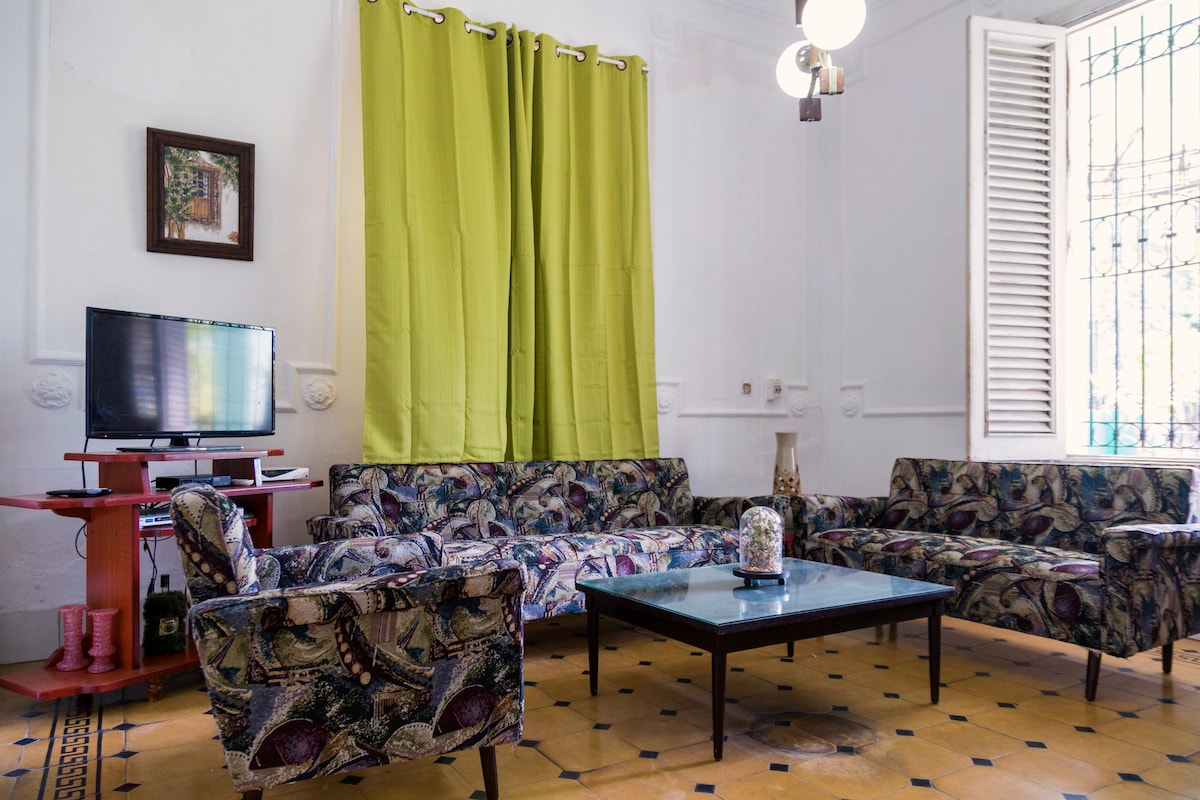 Neo-colonial house located in Vedado area, an ideal spot for visitors who want to reach the must-see sites but also have a taste of a non-touristy residential area. Walking distance from museums, bars and restaurants, cinemas,supermarket,the iconic Malecon and VIAZUL bus station. Well-connected to transport routes and easily accessible to Old Havana and Miramar. Comfortable Master-bedroom, AC and excellent mattress with a private bathroom.Free breakfast for children.Friendly family!!