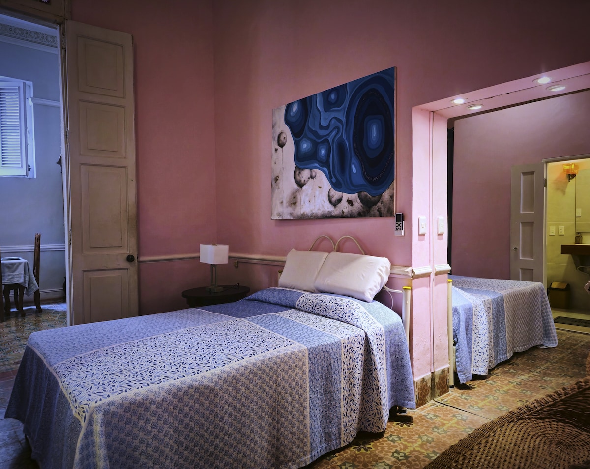 High standard room on a classical house of the 1950s in Vedado neighborhood, few blocks to Linea and 23th Ave, perfect connection to the whole city. Original paintings and exquisite taste original furnitures too. You will have a unique high standard experience comparable to 5 star hotels in Havana. Pool, outdoor terrace AC, Coffee Maker.MASSAGE ROOM. We also offer breakfast service. Internet access through cards And if you pay 5 usd you will have access to your entire stay