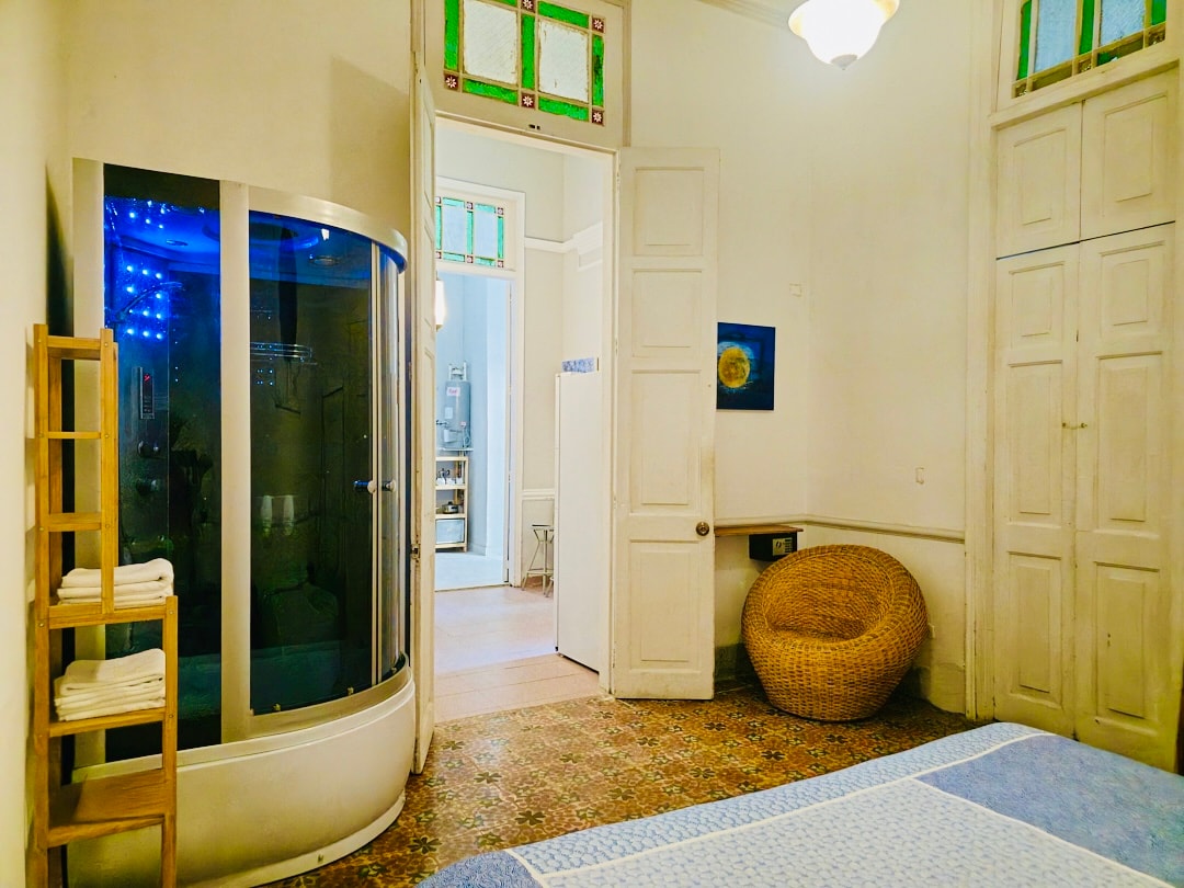 Un área de más de 100m2 solo para ti. Con su propio generador elèctrico, caja fuerte y minibar en tu habitacion. Inmejorable ubicaciòn, a 5 cuadras del mar, donde caminando puedes encontrar restaurantes, bares y museos o conexiones a cualquier lugar de La Habana. Decorada con arte de pintores cubanos reconocidos. Arquitectura de los años 40, espacios amplios, tranquilos y ventilados. Habitaciòn con baño privado, hall, desayunador y portal inmenso que se abre al