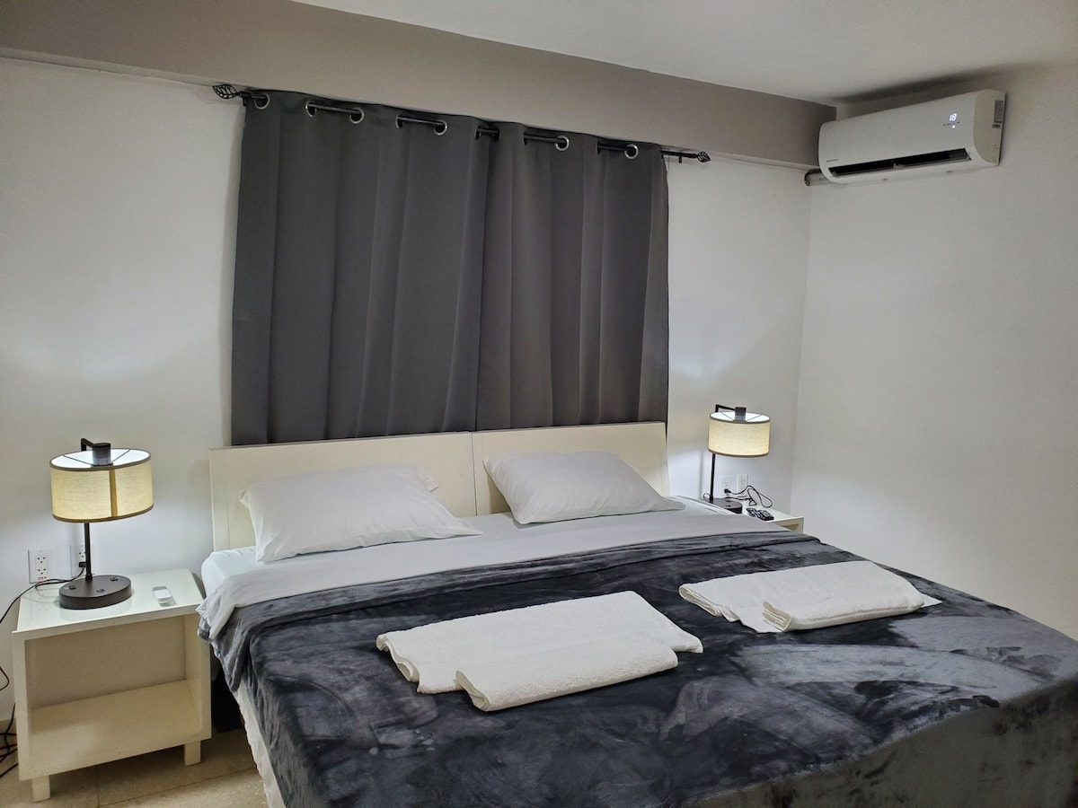 Independent ground floor apartment, very close to the Malecon and the Plaza de la Revolucion, fully air-conditioned, has 1 bedroom with its respective bathroom with hot and cold water. Air conditioning, TV, Minibar, Safe and Clothes iron are some of the benefits of our rooms. In the kitchen we have a double temperature refrigerator, washing machine, gas stove, electric coffee maker, electric kettle and other utensils. Ideal apartment for couples or single people.(No blackouts in our area)