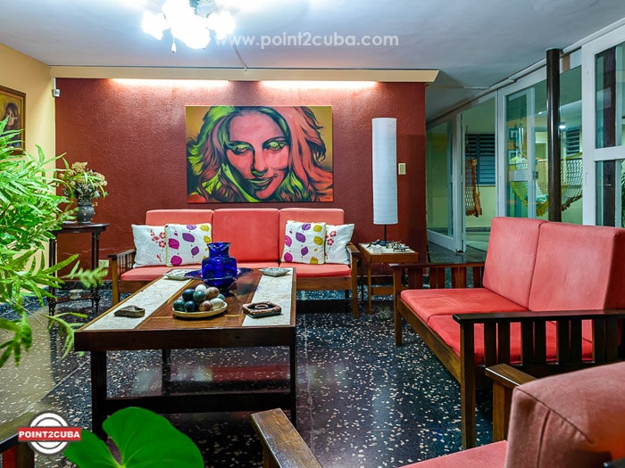 Este elegante alojamiento es ideal para viajes en grupo. Se encuentra en la zona más céntrica del Vedado y en una calle muy tranquila. El apartamento no tiene escaleras, posee una privilegiada terraza con vista a la calle. Ambiente espacioso, un gran salón de recreo y comedor. Cocina a disposición de los huéspedes. Tres habitaciones climatizadas con baño privado cada una. Wifi gratis