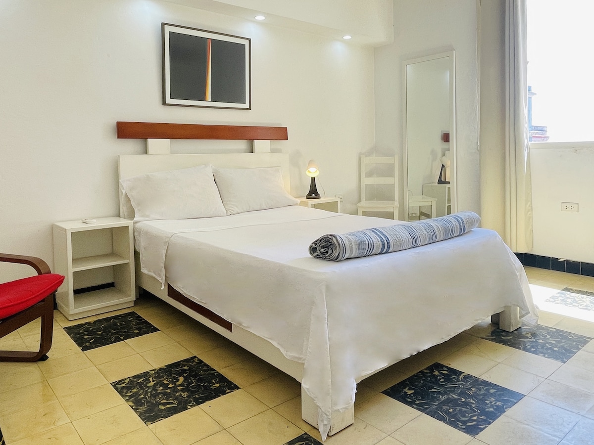 Apartamento moderno, excelente ubicación, conserjeria 24 h, acceso a WIFI free, aire acondicionado, agua caliente, agradables camas King size, con el beneficio de una terraza al aire libre con vistas de la ciudad, cerca del Malecón, bares, restaurantes y avenidas principales. Justo frente al Social Club Vitrola: bar, restaurante, discoteca.