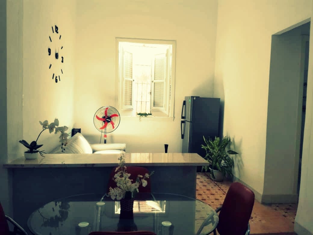Guests can enjoy the comforts of a private and downtown apartment. The house has a living-dining room, an open concept kitchen, a room with a private bathroom and a service yard. It’s located in Vedado, just four blocks from Havana’s Malecon (waterfront), the Cuban Art Factory and a few minutes from the historic city center. The area has several restaurants, cafés and bars. Your hosts will be available at all time.