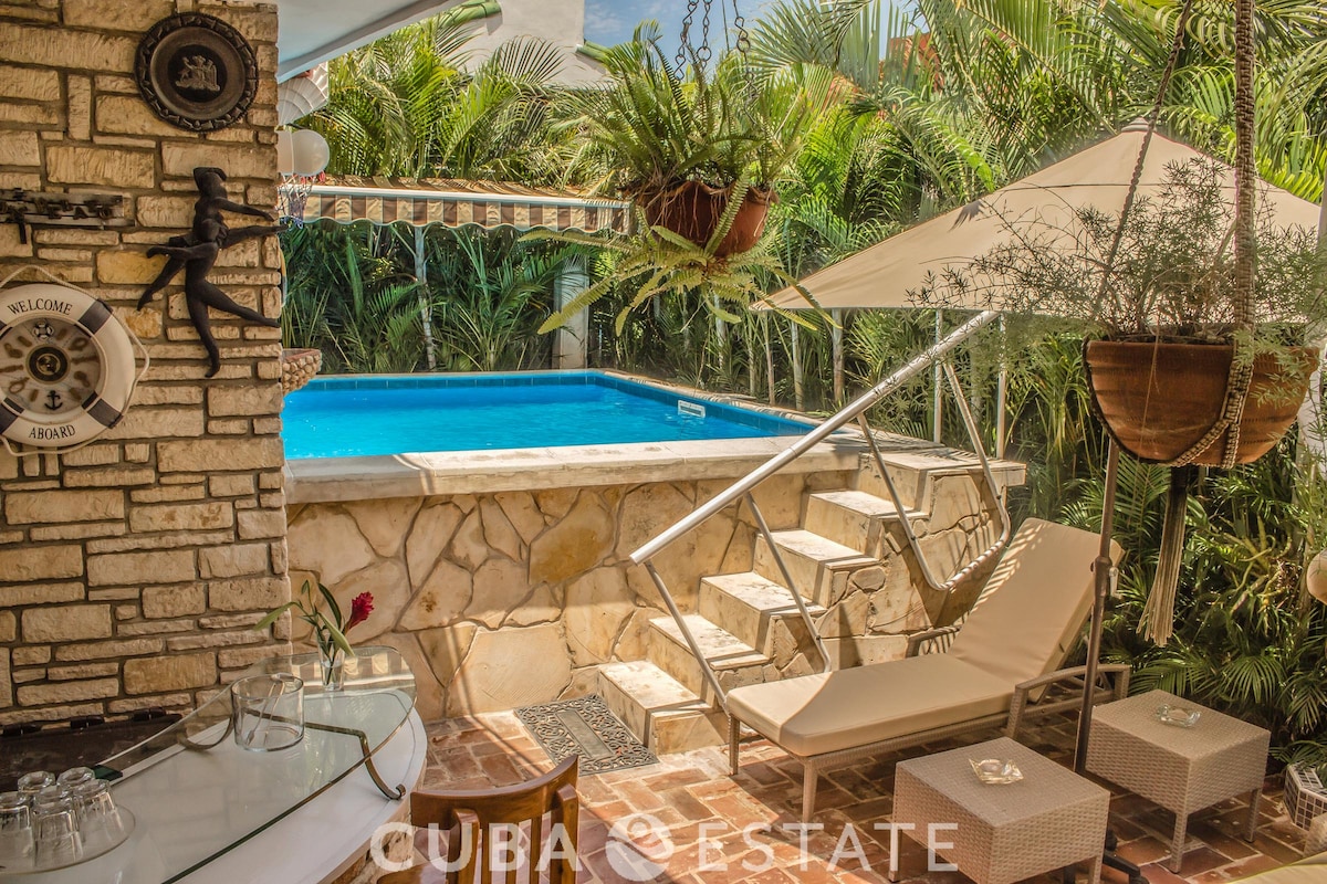 A classical home with the best service and big lovely spaces, pool, nice bedrooms, styling furniture, open spaces, terrace with sun chairs. WIFI available but not include on the booking price. Please take into account our home rules, no visitor will be allowed, only the ones on the reservation or only family will be allowed for visits. Enjoy multiple services, we have solar panels for electric if any electric problem happen. Choose support of the Cuban people as travelling category to book