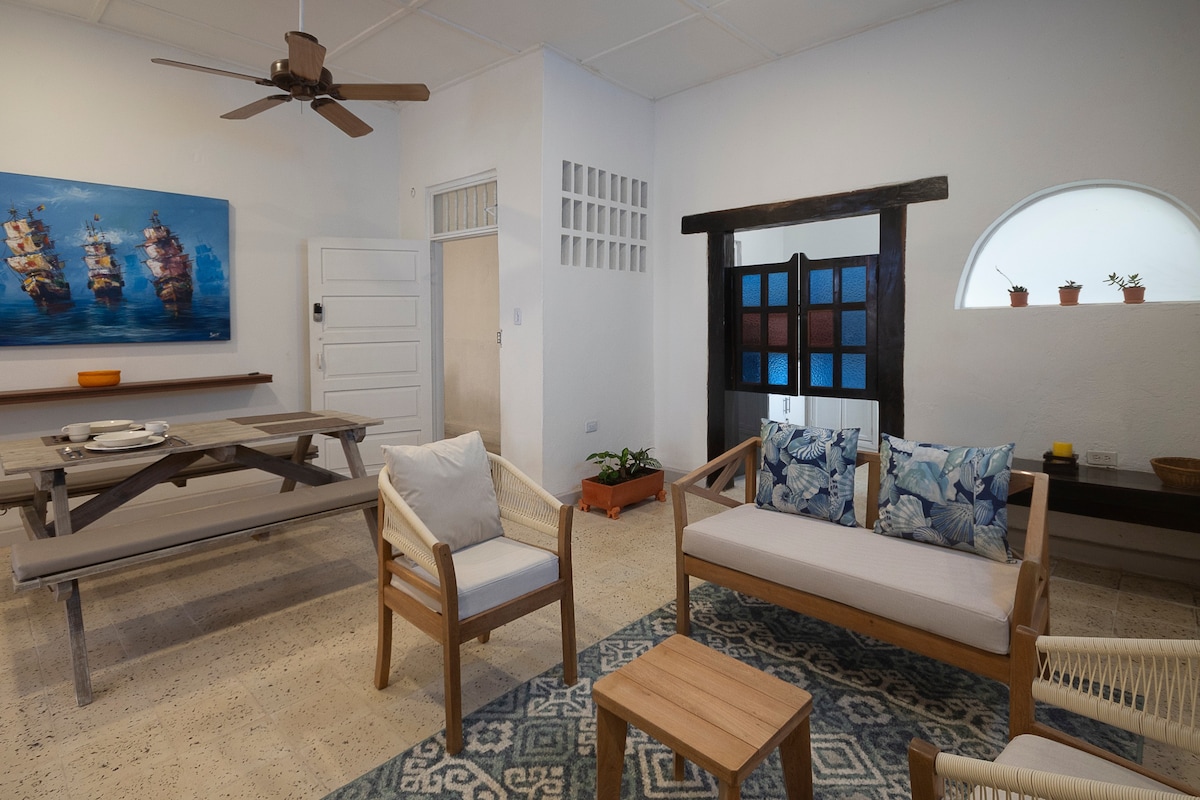 1 BR Loft Suite in the heart of Cartagena inspired by some of the finest 5 star Hotels in the world. Located inside the walls of the old city, within walking distance to shops, entertainment, restaurants, nightclubs and bars. Enjoy staying in this Unesco Heritage town full of history and excitement. Fully equipped kitchen with Washer/Dryer, King Sized Bed, pullout Queen Size Couch, Television, Netflix & 300MbWi-Fi. Our modern beach vibe apartment is perfect for a couple to enjoy and relax.