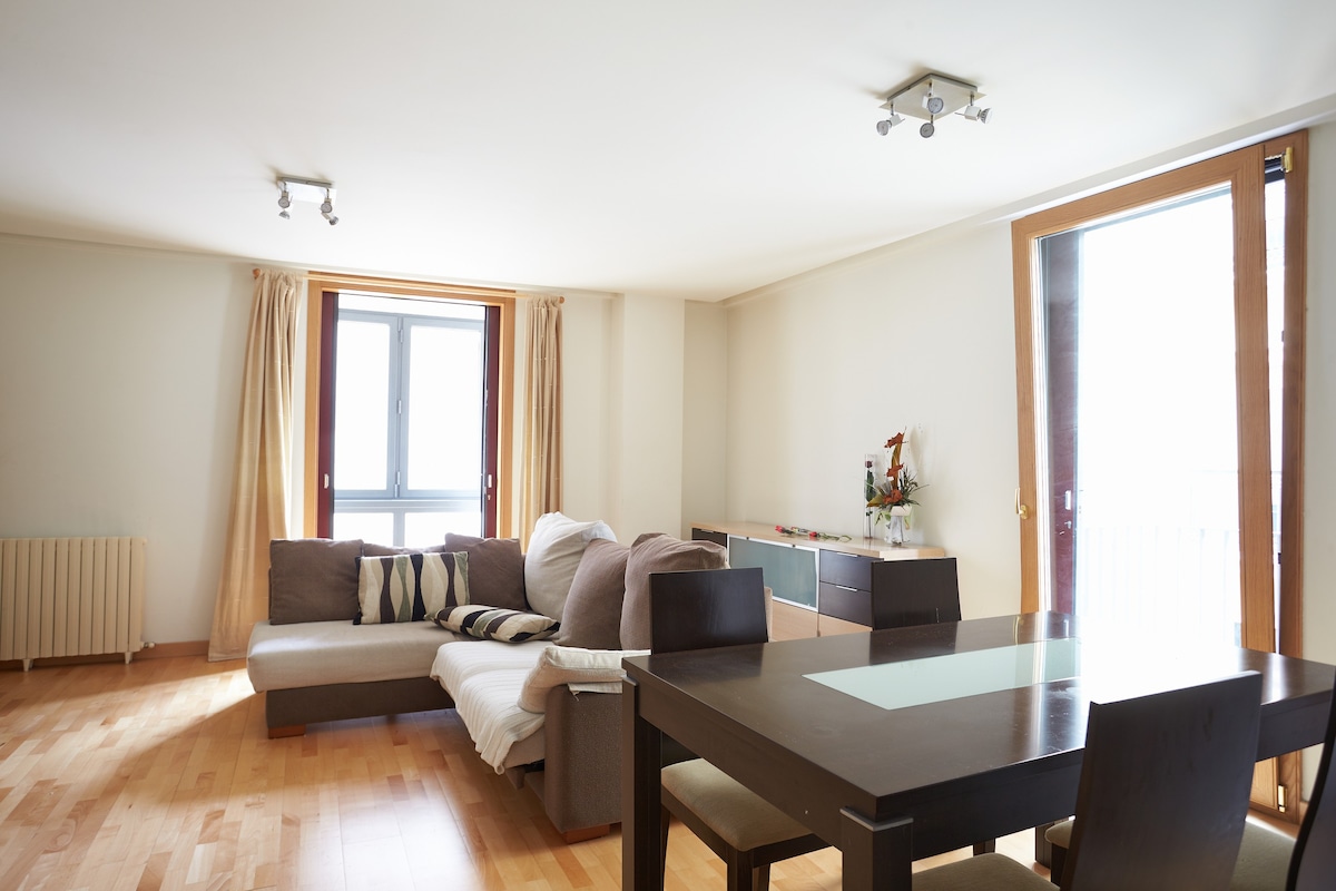Spacious and bright apartment located next to the Plaza del Ayuntamiento, in the heart of the old town of Pamplona. Fully renovated in June 2017 (we are in the process of decoration), we have elevator, 3 rooms with double beds, a large open space of 50 m2 that joins kitchen, dining room and living room (with two single sofa-beds) and 2 bathrooms with shower.
