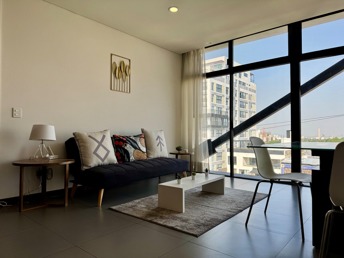 Prime Location: Comfort in Zapopan Stay steps away from Plaza Galerias, surrounded by top restaurants, shops, and cinemas. Enjoy quick access to Parque Metropolitano, the city’s best green space for exercise and relaxation. Connectivity: Easy access to major highways. Versatile: Ideal for business travelers and tourists. Convenience: Designed for a seamless stay. Perfect for long stays or business trips. Book now to secure your spot in Zapopan’s best location!