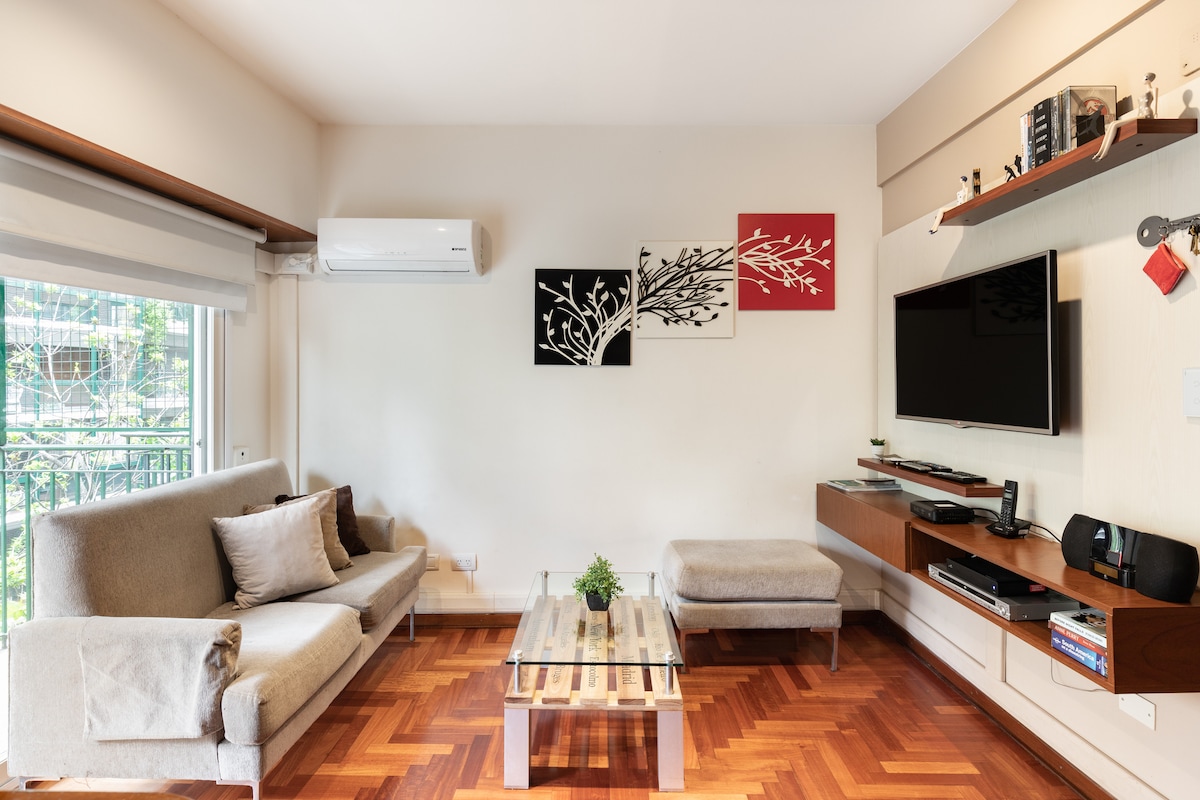 Cook breakfast in a kitchen with vivid wood cabinetry and dine at a traditional table within the open layout of this relaxed studio. Sprawl out on the sofa for a quiet moment of reading. In the evening, unwind with a cocktail on the leafy balcony. Wifi 100MG