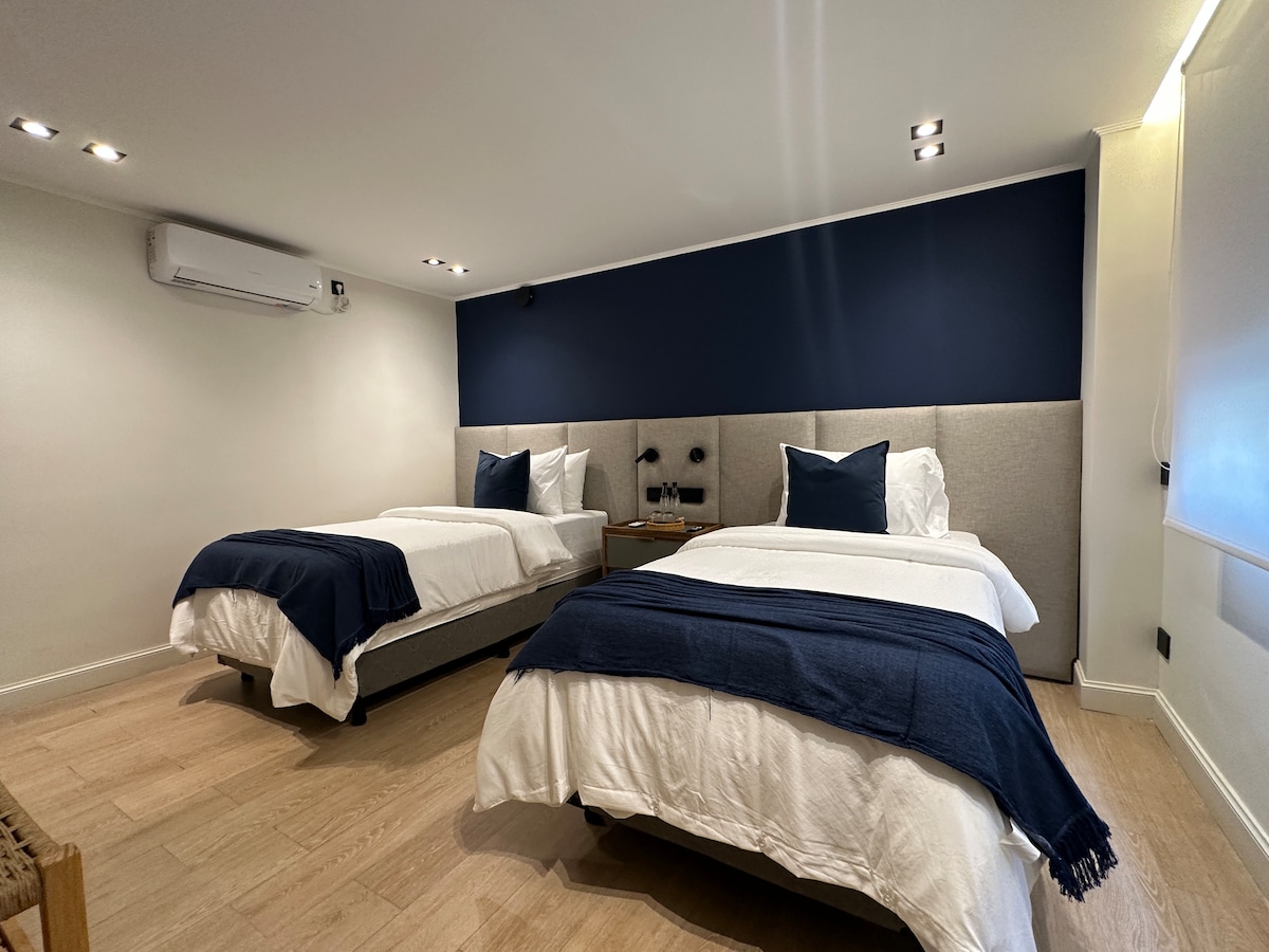 Bright and modern apartment at Hotel Ker San Telmo, located at Av. Colón 455. It features two twin beds, a desk, TV, air conditioning, safe, minibar, and electric kettle. The bathroom includes a bathtub, double sink, and premium amenities. Ideal for comfortable and functional stays in a central area, close to Puerto Madero, San Telmo, and Buenos Aires’ main attractions. Spacious and comfortable space. The hotel offers access to the spa, with sauna and massage services (additional cost).