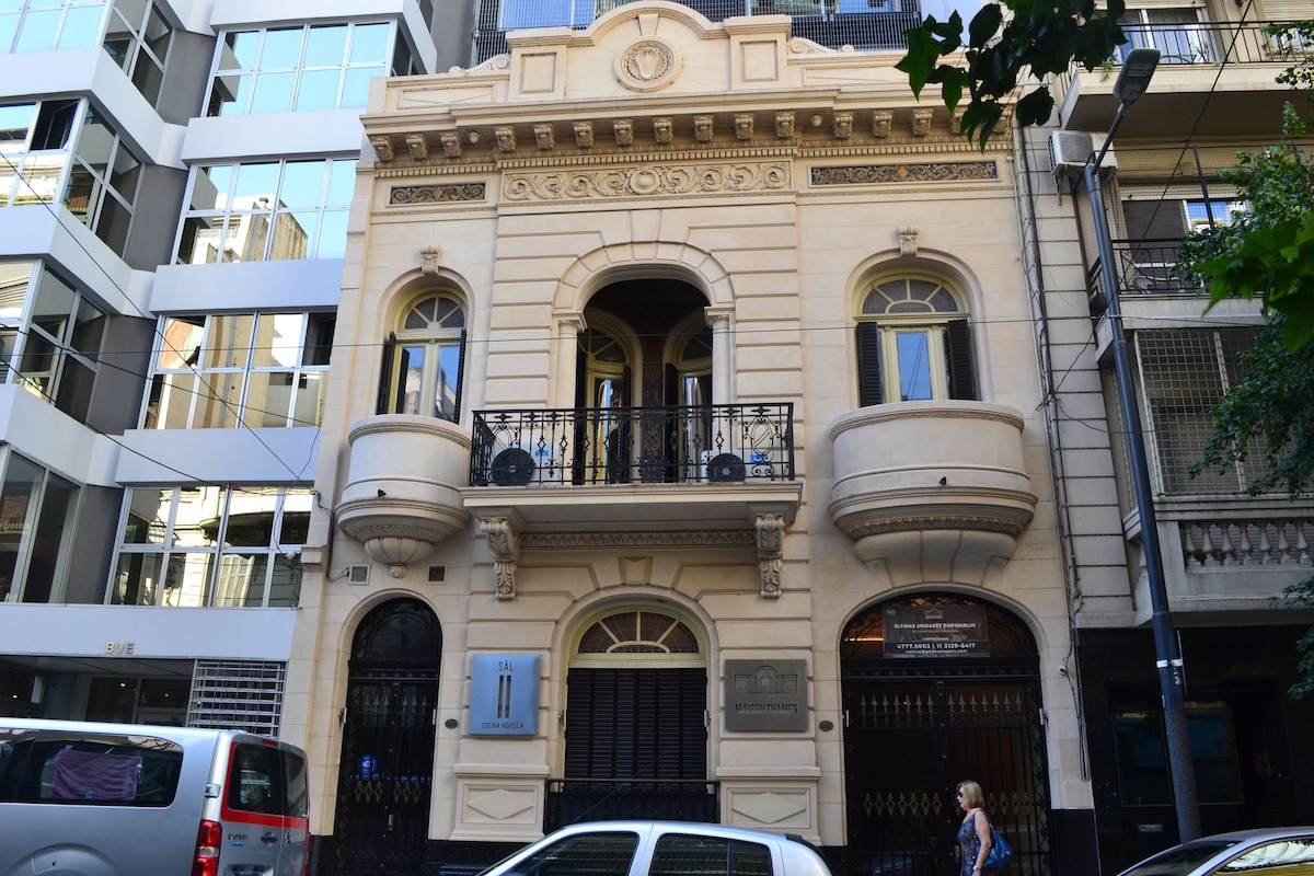Ubicado en Recoleta , bien conectado con medios de transporte público y cerca de los principales puntos de interes. zona con mucha seguridad, vida comercial y los mejores restoranes, bares y cafés de la ciudad. El apartamento tiene 200 metros cuadrados, 2 habitaciones un entrepiso de techo bajo con una cama de una plaza y dos baños. Es la antigua fábrica DUBARRY de jabones y perfumes de principios del siglo XX , adaptado para vivienda en 1988