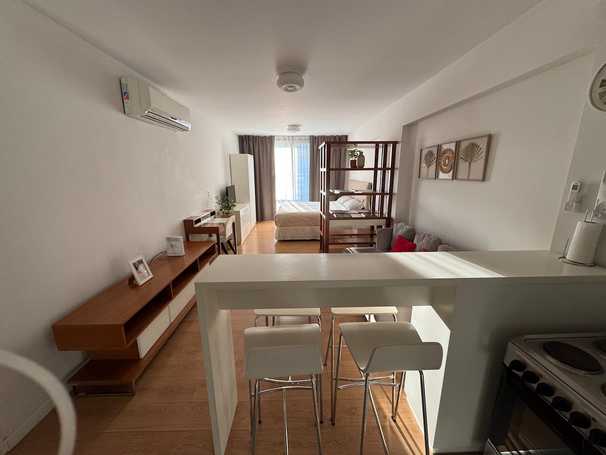 Beautiful brand new studio, fully furnished with excellent quality equipment -TV 32' with cable/Netflix, WIFI 100 MB, A/C hot-cold, King Size bed, desk, full kitchen, -in a Hotel style building with 24 Hs security, swimming pool, Gym, laundry. Located in the heart of Palermo Soho: 200 mts. from subway D/Plaza Italia (Santa Fe Av.), close to stores, bars, restaurants, shopping malls, parks, museums and with easy access to downtown and many touristic spots!