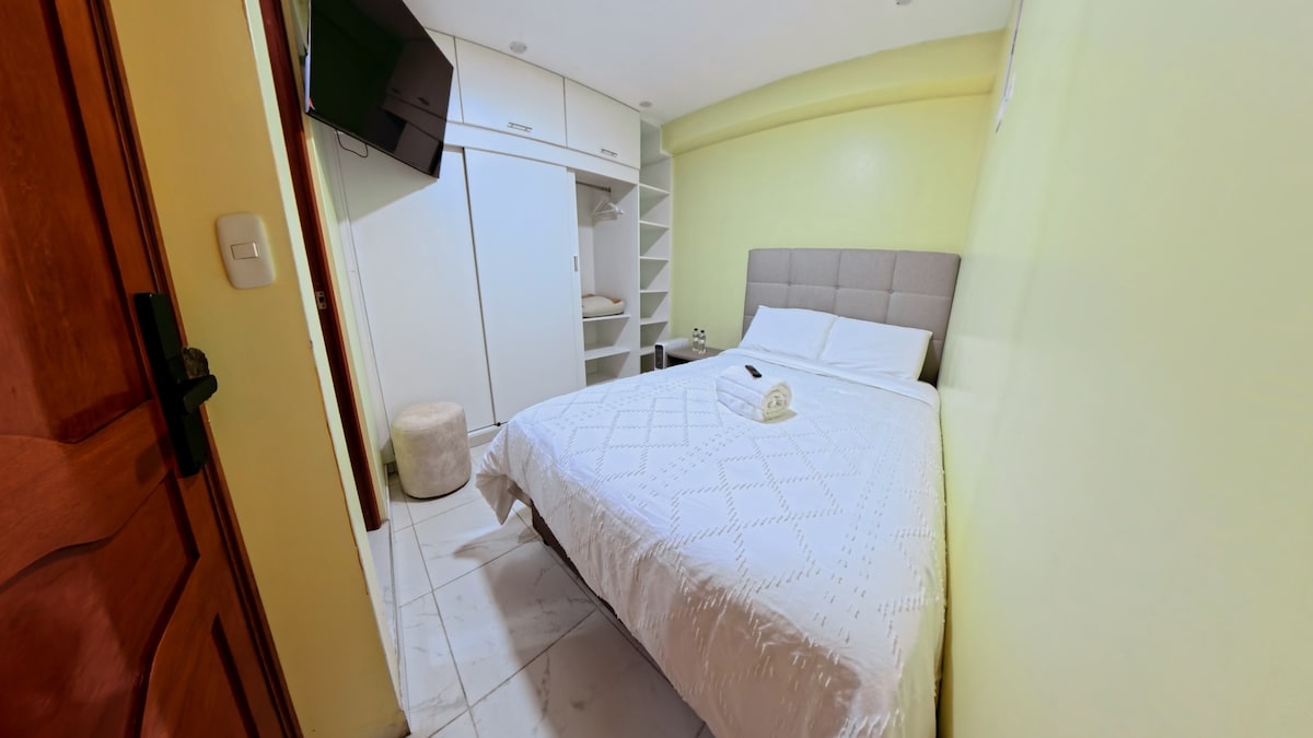 ¡La vista te impresionará y disfrutarás de un ambiente privado y luminoso! ❇️ Sala de estar con smart TV ❇️ Estación de té con hervidora, termo, microondas y vajilla. ❇️ 1 cama matrimonial ❇️ Ducha independiente y privada. ❇️ Baño independiente y privado. ❇️ Garaje privado (con pago adicional) La zona es segura y podrás visitar un mercado tradicional, ¡ven y sumérgete en la cultura de Puno!