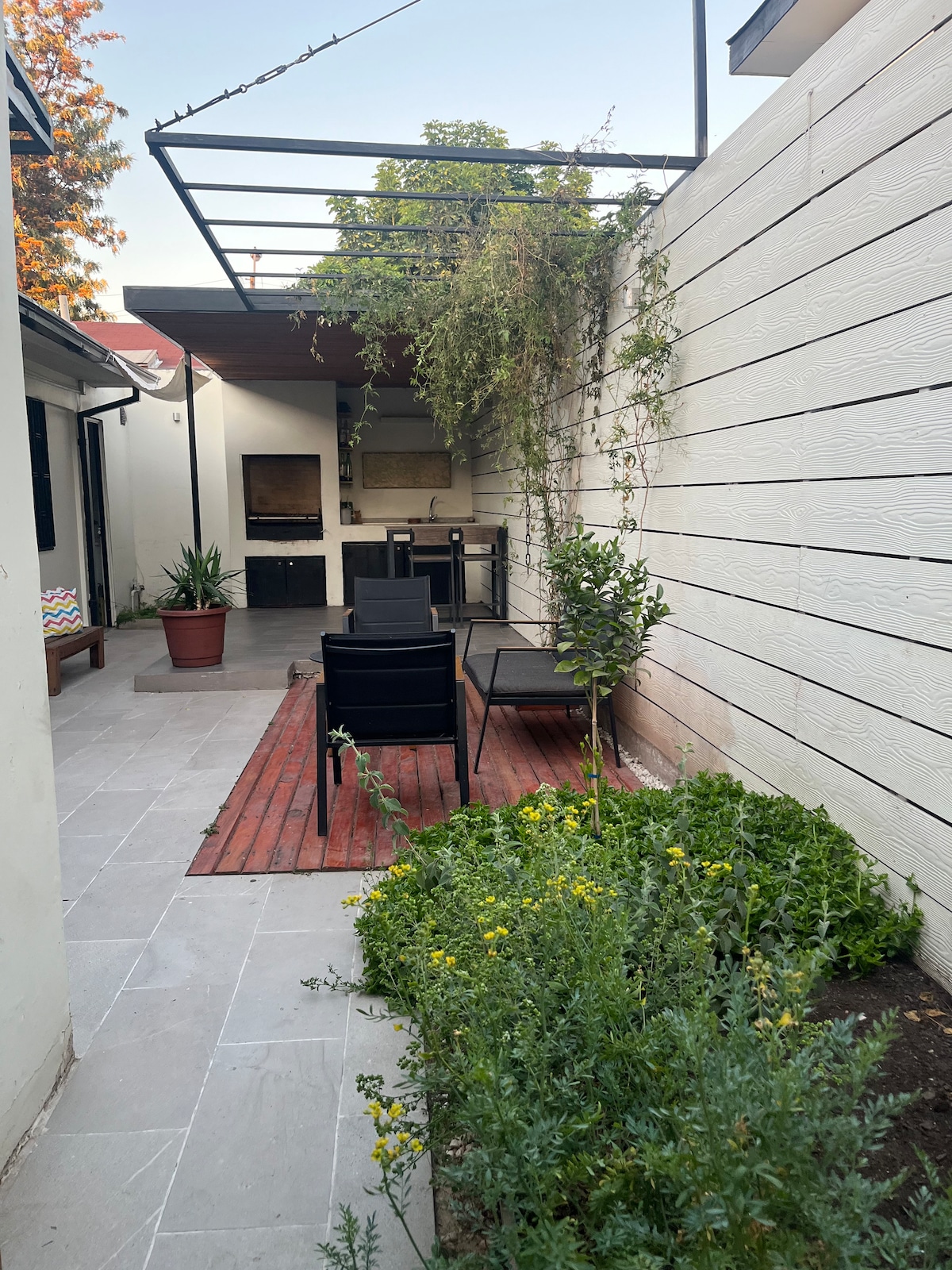Casa recién remodelada (2024), en Providencia a pasos de la estación de metro Bilbao y con estacionamiento interior techado. Tiene aire acondicionado en cada habitacion, cocina full equipada, parrilla para asados, wifi, 2 smart TV, sistema Alexa conectado a luces, música y cortinas. En el jardin tienes limones, menta y romero. OPCIONAL: por un valor de $60.000 se puede acceder al servicio de jacuzzi, con agua a 40°, para ser usado por hasta 12 horas.