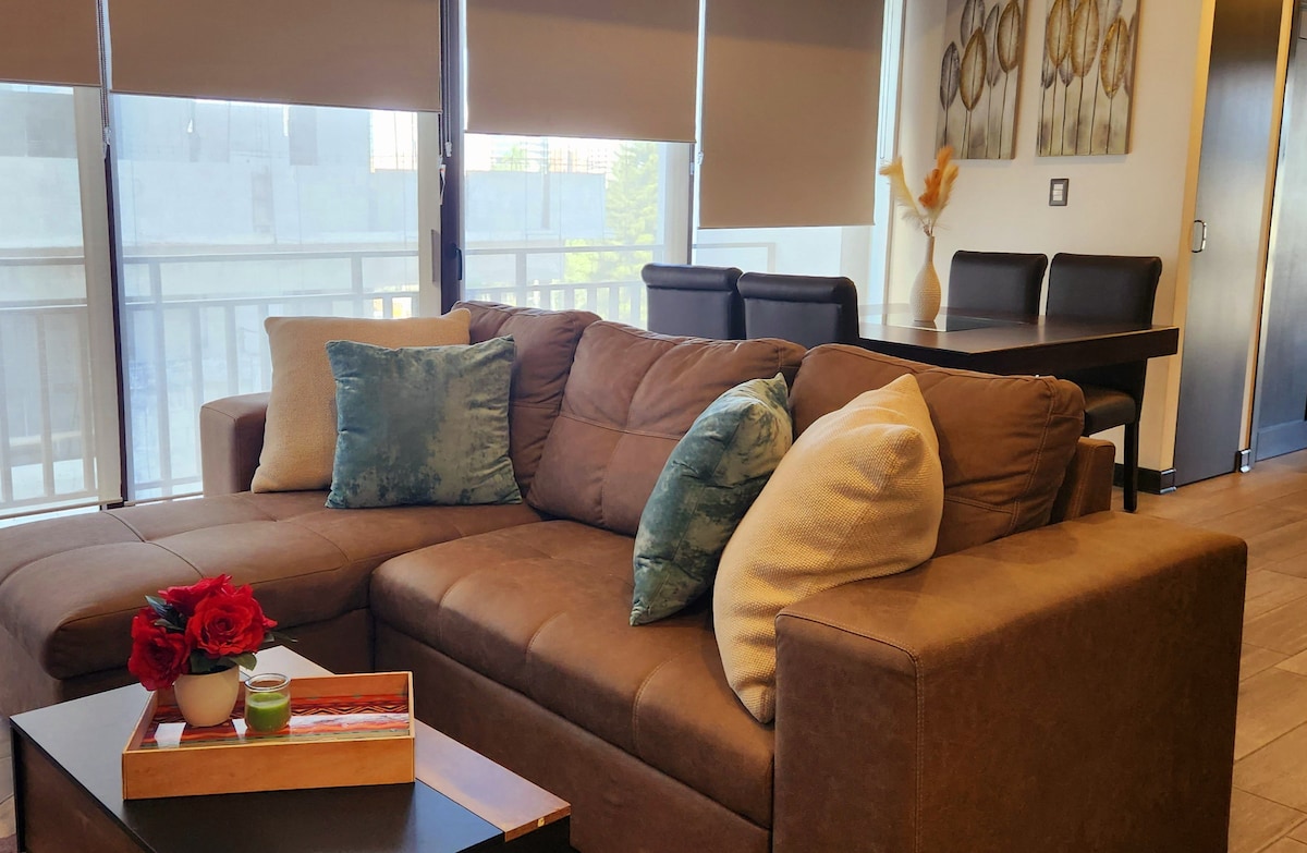 Acogedora suite con estilo en plena zona 10, a pocos pasos de centros comerciales, restaurantes, hospitales, universidades, aeropuerto y los principales edificios corporativos de la ciudad. Suite con una lujosa decoración, balcón, WiFi, Smart TV y baño completo privado, cocina equipada y parqueo seguro en el sótano del edificio. Áreas comunes con piscina, gimnasio, juegos para niños y varias amenidades mas.
