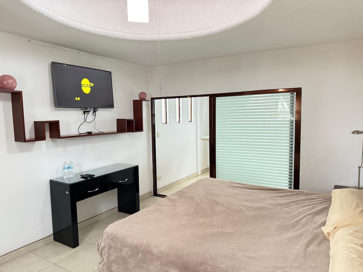 Bright, modern high-rise space on the 18th floor with open city views. Ideal for couples, friends, and relaxed longer stays. Rooftop with panoramic view 360°. • 3 Queen beds for up to 6 guests • Equipped kitchen • Large-capacity washer and dryer • Electric blinds and high-speed Wi-Fi for home office Enjoy a 24/7 GYM, and in-building parking for 2 cars. Pet-friendly building with security service and 24/7 security cameras. Quick access to Cholula, Angelópolis, and Val’Quirico.