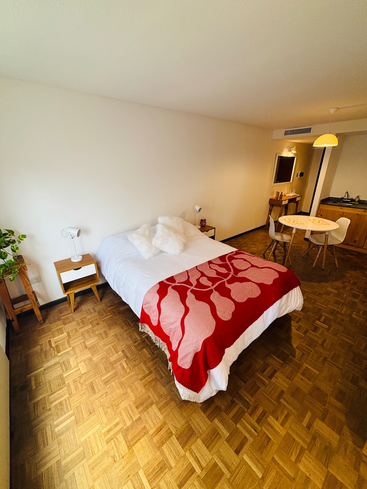 Downtown apartment. Excellent location, everything is close by. Comfortable for 2 people. One block away from La Cañada and 5 blocks away from Patio Olmos. It is a very beautiful and safe area. Additionally, right in front of the building there is a 24-hour parking lot, which means the street is never deserted. During the day, there is a pedestrian street half a block away and there are all kinds of stores around.